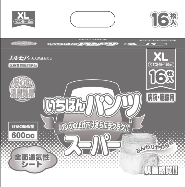【大人用紙おむつ】エルモアいちばんパンツスーパー(長時間用)XLサイズ 16枚×6パック入り